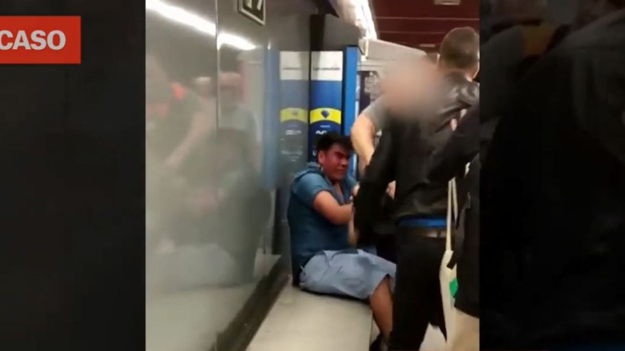 En las imágenes se puede ver cómo varios pasajeros golpean al individuo mientras un guardia de seguridad trata de sujetarle.
