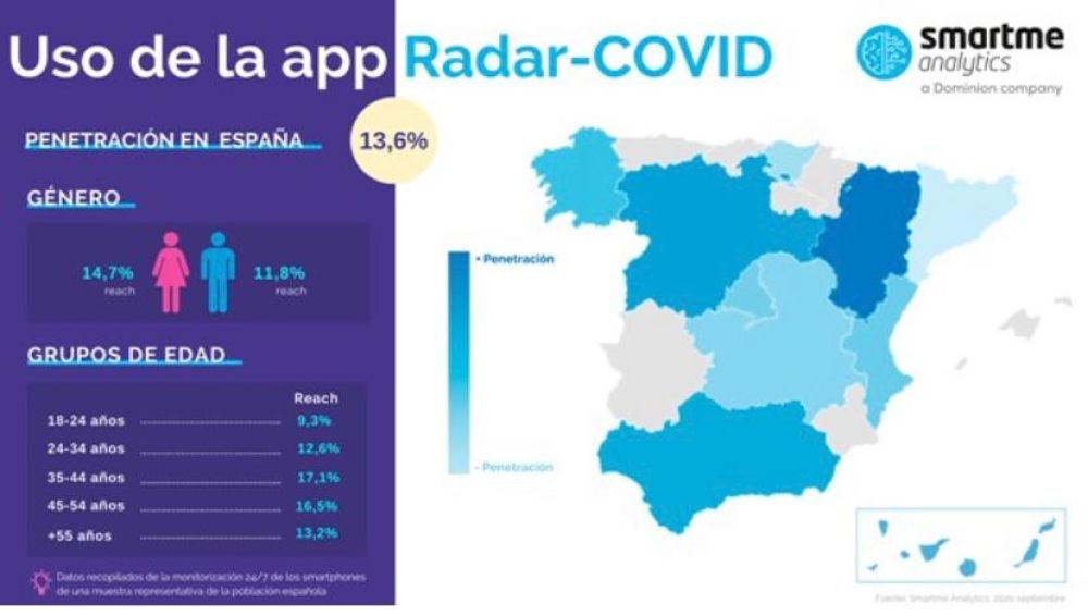 La app Radar Covid permite al ciudadano conocer su grado de exposición al coronavirus, así como alertarlo en el caso de que haya mantenido un contacto estrecho con una persona positiva a la infección.