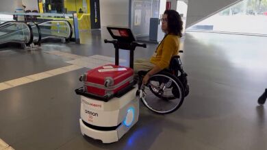 Las personas invidentes también tienen su robot. “Lo hemos desarrollado junto a la Fundación Once. Los clientes con dificultad visual que entren al hotel podrán cogerle el brazo sensorizado que tiene y le acompaña a la habitación o al comedor, o a cualquiera de los espacios que quiera ir dentro del hotel”.