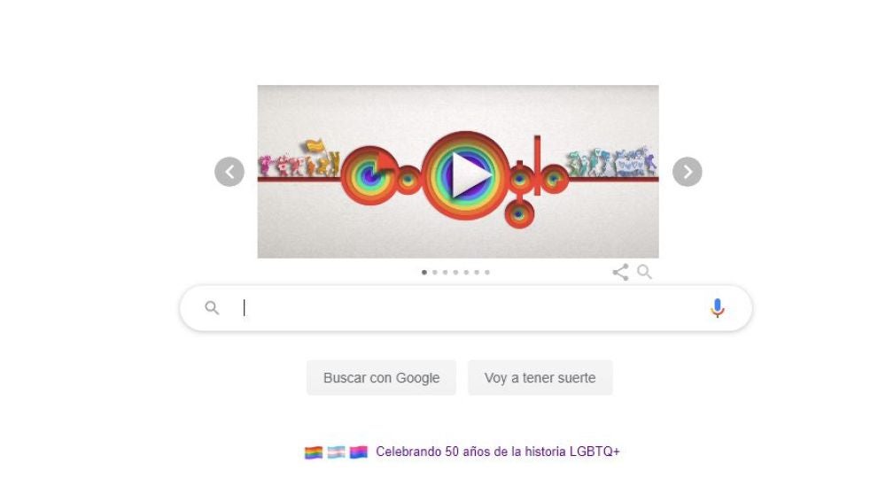 Google celebra este martes los 50 años de Orgullo LGTBI con un doodle que hace un repaso por la historia del movimiento.