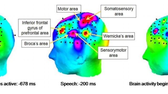 Durante el experimento, los investigadores midieron las ondas de los examinados cuando los sujetos pronunciaban varios monosílabos y números y detectaron que 0.2 segundos antes de emitirlas la zona del cerebro que se iluminó varió dependiendo de la sílaba.