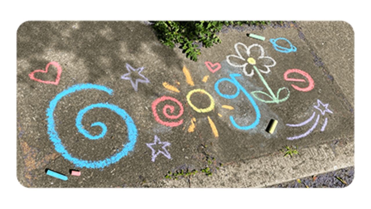 España celebra hoy, jueves 15 de abril, el Día del Niño 2021 y Google ha querido sumarse con un doodle. El famoso buscador ha escogido la imagen de su nombre dibujada en el suelo con tizas de colores.