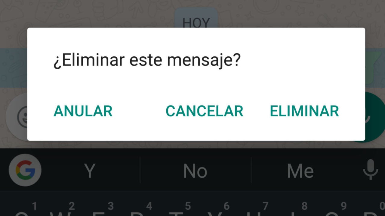 Una vez el mensaje sea anulado, desaparecerá de tu propio chat y del de la persona a la que se le envió, a la que además le aparecerá un texto: "Este mensaje fue anulado".