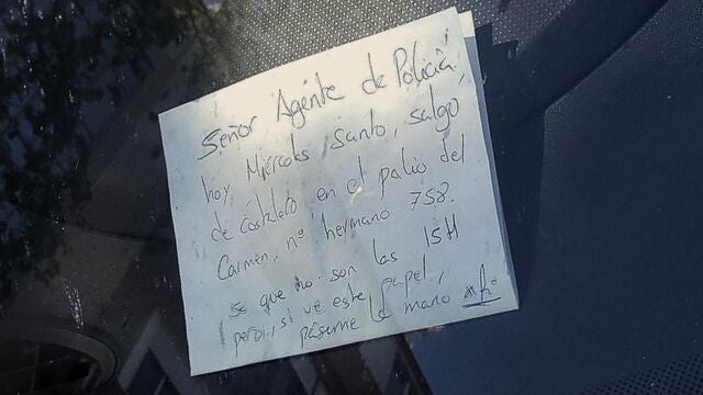 Durante estas fechas de Semana Santa, la cantidad de personas que acude a Sevilla a disfrutar de las procesiones y el ambiente provoca que las calles se corten y sea imposible aparcar. Esta situación, que provoca la desesperación de mucha gente, la sufrió un costalero de la Hermandad del Carmen durante la jornada del Miércoles Santo. Decidió 'echarle morro' y dejó una nota en el parabrisas del coche por si pasaba la Policía Local a multarle.