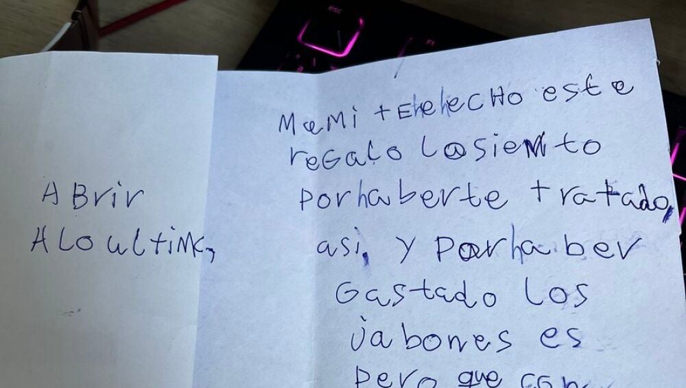 En la carta se puede leer: "Mami te he hecho este regalo. Lo siento por haberte tratado así y por haber gastado los jabones. Espero que con esto te sirva. Te quiero". Un gesto que el resto de usuarios de la plataforma han aplaudido, tanto a la madre por los valores inculcados como al menor por su educación.