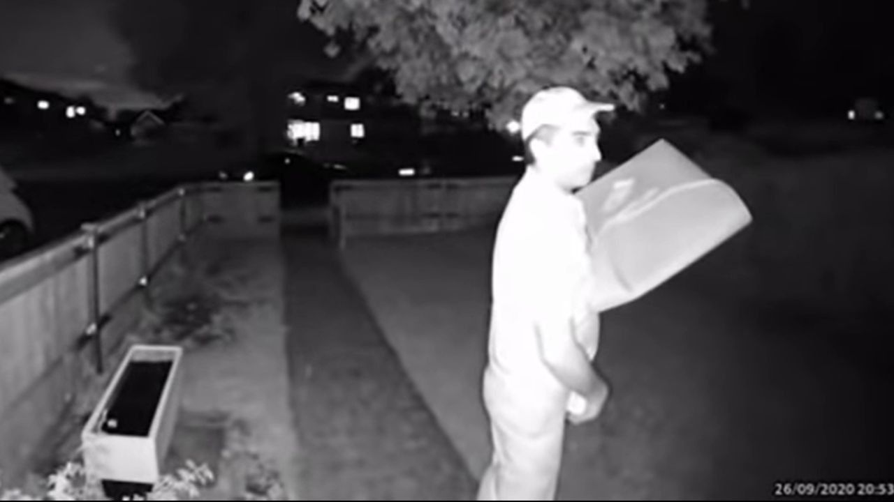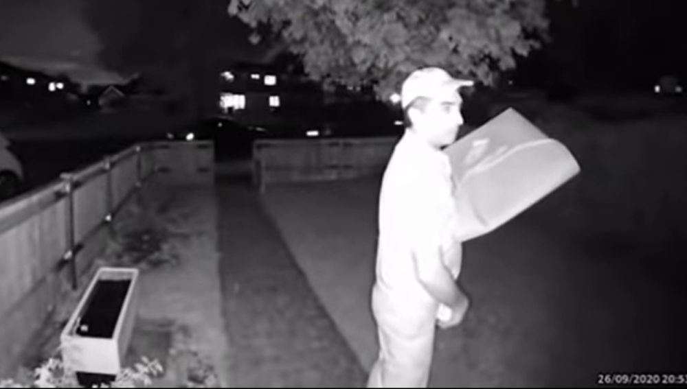 Jonathan Terry, un hombre de 31 años de Great Missenden, un pueblo de Inglaterra, había pedido una pizza y una tarrina de helado para que se lo llevaran a su casa el pasado domingo. Cuál fue su sorpresa cuando su novia le dijo que dejara de tomarse el helado tras haber visto la cámara de seguridad.