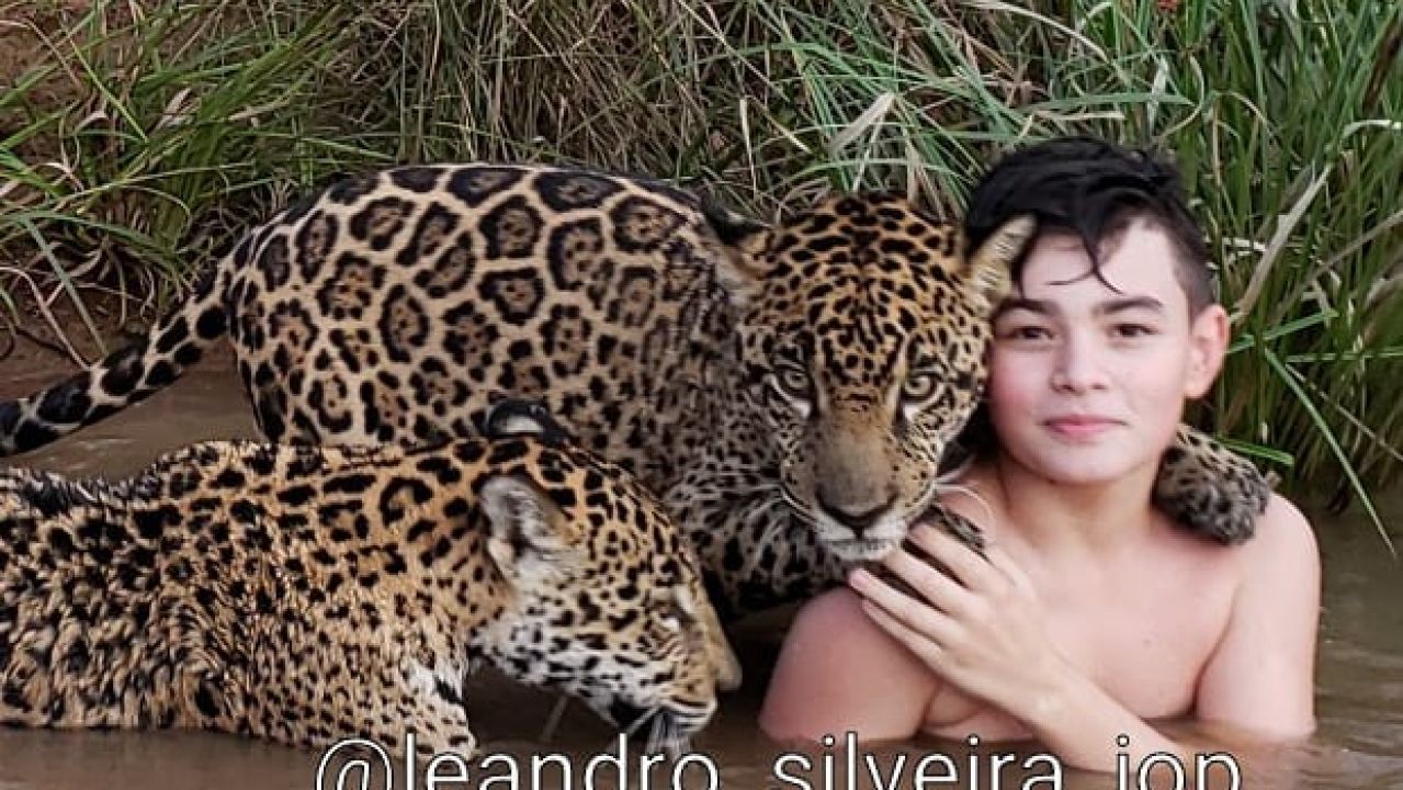 Muchos tacharon la fotografía de farsa, pero aunque parezca increíble, es real. Se trata de Tiago Silveira, un adolescente de doce años que convive con jaguares desde pequeño. Sus padres, Leandro y Anah, son biólogos y coordinan el Instituto Jaguar de Brasil, según recoge la BBC.