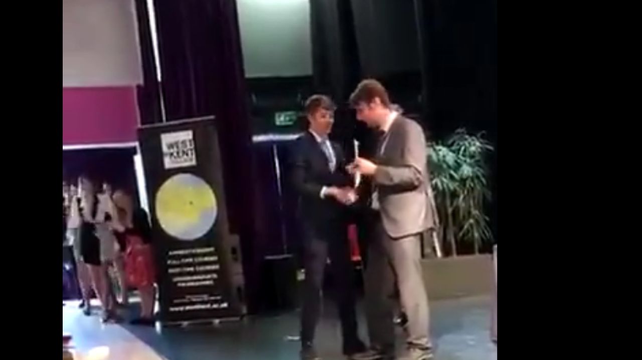 Brandon Austin es su nombre real y Sophia Stardust, su 'alter ego'. El joven es 'drag queen' y aunque a su graduación no fue caracterizado, nadie se esperaba lo que iba a suceder. Cuando le tocó subir a recoger su diploma, el joven inglés aprovechó el momento encima del escenario para hacer un 'deathdrop', movimiento de baile característico del programa de televisión 'RuPaul's Drag Race'.