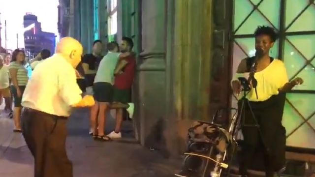 El último vídeo que se hizo viral de este anciano se produjo durante esta semana. Ocurrió en la calle de Gran Vía, y allí se encontraba una artista (@DanDann), interpretando ‘My Baby Just Cares For Me' de Nina Simone.