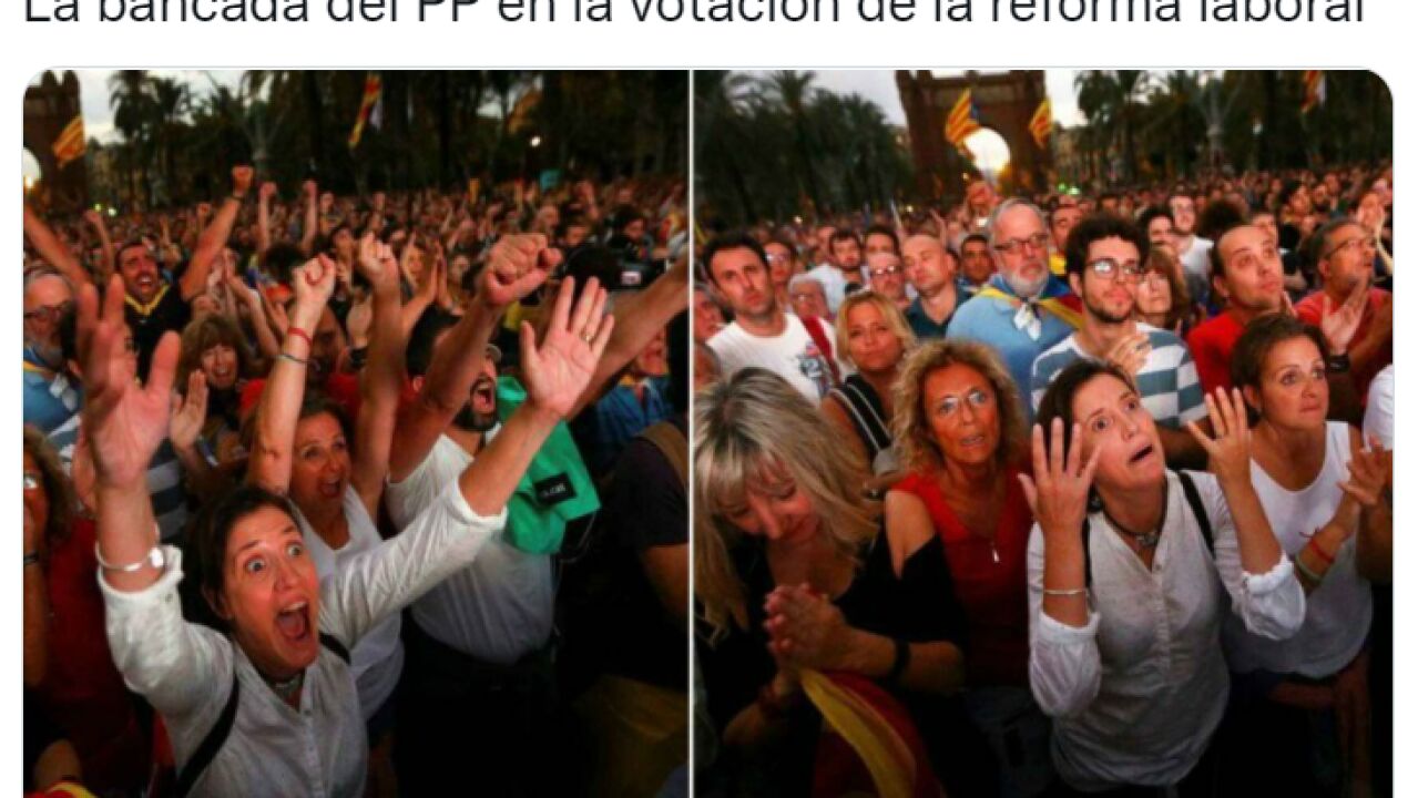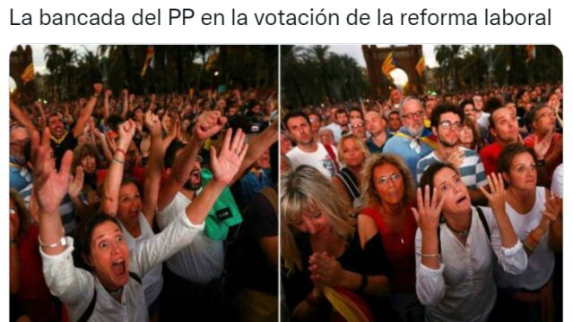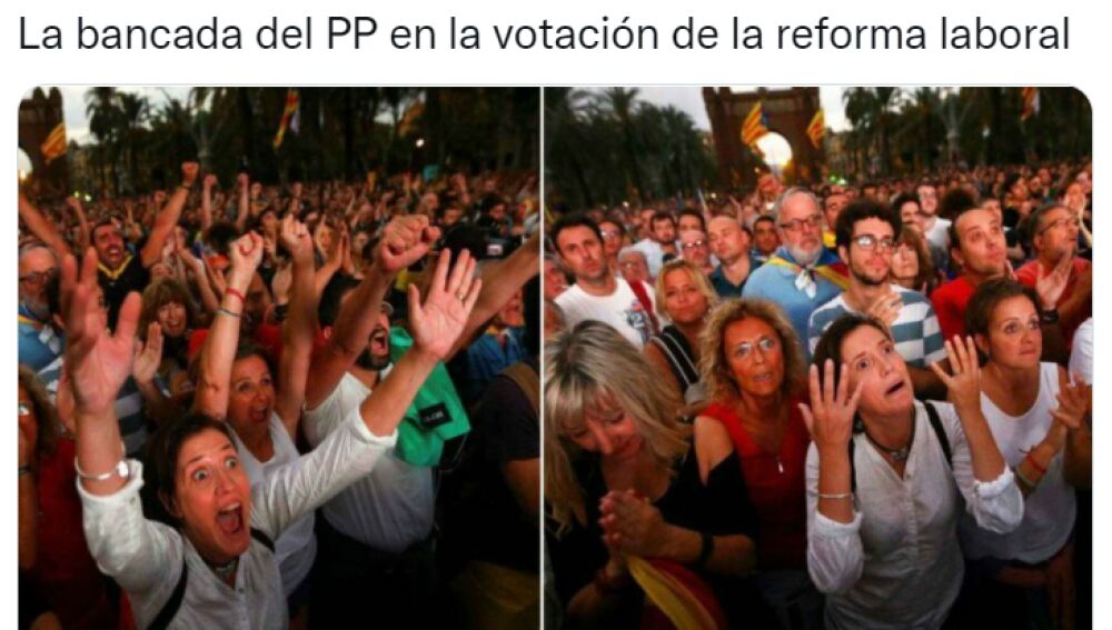 El error a la hora de la votación ha provocado varios memes del momento. Uno de ellos sobre "la bancada del PP en la votación de la reforma laboral".