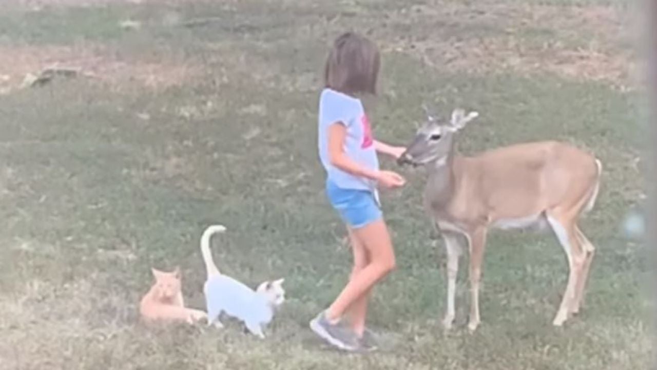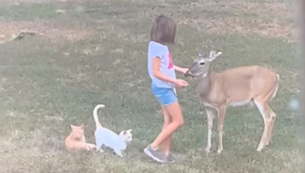 Según relata en su hilo de Twitter, esta no es la primera vez que se puede ver a Laurie acompañada de una gran variedad de animales. Tal y como se puede ver en las imágenes, la pequeña juega con gatos, mofetas e incluso con un ciervo. "Hay una niña donde vive mi madre que cada día anda con un grupo diferentes de animales siguiéndola a todas partes", relata Feline desde la red social.