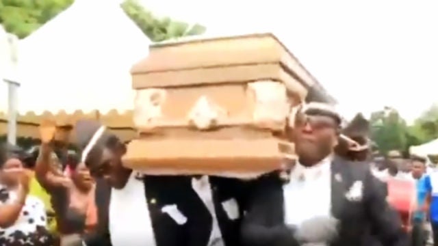 La web ‘Know Your Meme’ ha rastreado su origen y las imágenes de los porteadores de ataúdes nos llevan hasta Ghana, donde esta práctica comenzaba a popularizarse en los entierros allá por 2017.