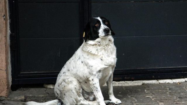 El perro, apodado Kupata, salta delante de los coches y ladra para obligarles a frenar para que los niños puedan cruzar la calle.