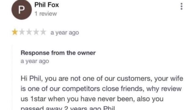 Se trata de Phil Fox, quien decidió poner una estrella a un negocio en Google. La respuesta del propietario del negocio ha dejado boquiabierto a varios usuarios al ver el mensaje que ha dejado.