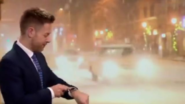 El periodista se encontraba en directo dando la previsión del tiempo cuando fue interrumpido por el reloj inteligente de Apple.