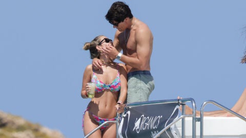 La famosa pareja ha sido fotografiada disfrutando de una jornada en alta mar en un barco donde han protagonizado momentos tan románticos como este... Además, les hemos visto divertirse juntos sobre una tabla de paddle surf...
