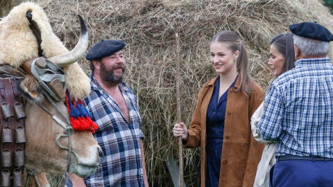 A su llegada, la familia real ha sido recibida por los impulsores de la candidatura al Pueblo Ejemplar que fue concedido a la parroquia sierense de Valdesoto por mantener vivas y potenciar "tradiciones ancestrales que transmiten de generación en generación".