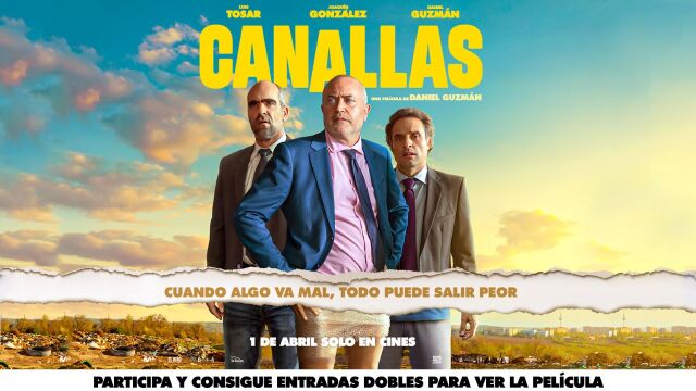El próximo 1 de abril se estrena en cines 'Canallas', la nueva película dirigida y protagonizada por Daniel Guzmán quien está acompañado por Luis Tosar y Joaquín González. Desde Objetivo TV te ofrecemos la posibilidad de conseguir una entrada doble para ver la cinta en el cine a través de este concurso.