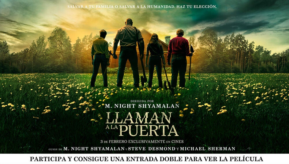 El 3 de febrero llega exclusivamente a los cines y su historia se ambienta durante unas vacaciones en una cabaña alejada de todo, donde una chica y sus padres se convierten en rehenes de cuatro desconocidos armados que obligan a la familia a tomar una decisión imposible para evitar el apocalipsis. Con acceso limitado al mundo exterior, la familia deberá decidir qué creer antes de que todo esté perdido.