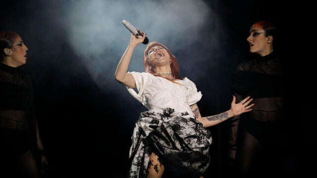 Por contraste, Miss Caffeina ha tirado de rictus serio para denunciar los comentarios y juicios gratuitos en una puesta en escena en la que más que su cabina futurista ha funcionado la coreografía gestual y sus tablas en el mundo musical.