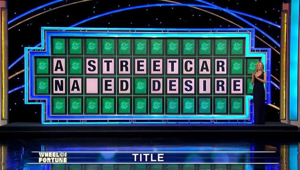 El panel por el que se jugaba 600 dólares era averiguar el título de la obra 'Un Tranvía llamado Deseo' del dramaturgo Tenesse Williams, en inglés 'A Steetcar Named Desire'. La única letra que quedaba por averiguar era la "N" y, el concursante, tras caer en la casilla de 600 dólares, dijo la "K". De esta manera, la traducción cambiaría de 'llamado' a 'desnudo'.