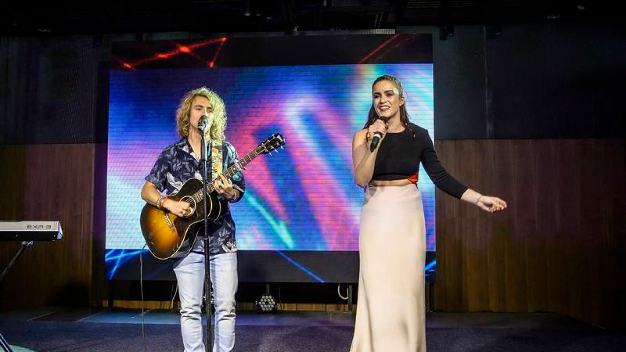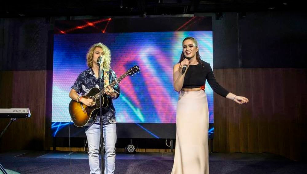El representante de Eurovisión 2017 Manel Navarro ha actuado junto a la representante británica Lucie Jones en el Centro de Congresos y Exposiciones de Kiev donde han interpretado el tema 'Shapes of you', un cover de Ed Sheeran.