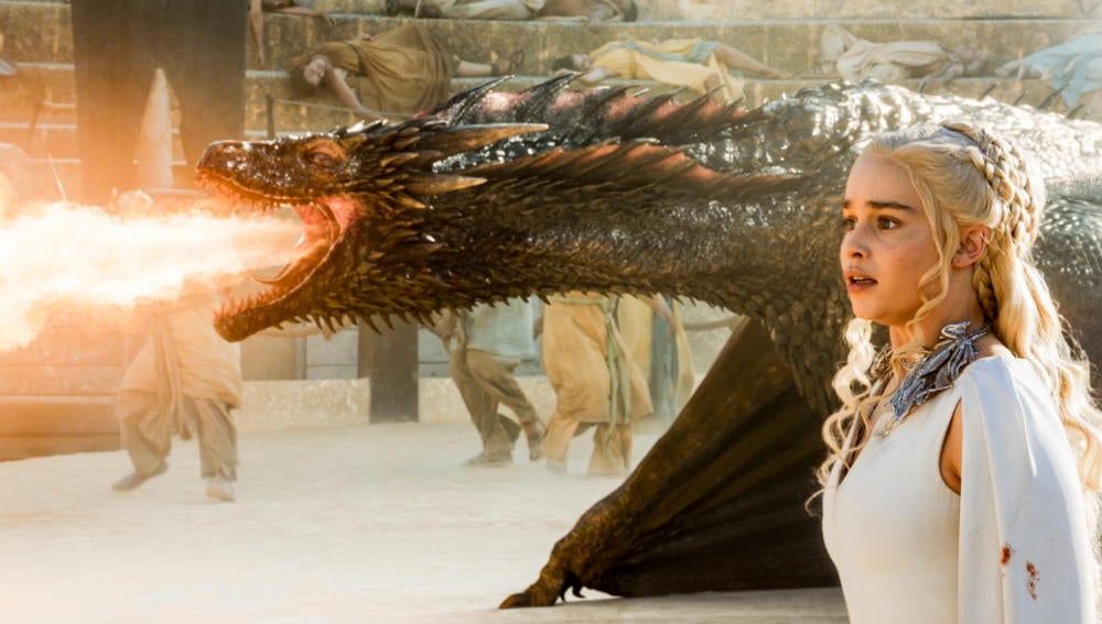 Desde la segunda temporada de la serie la compañía de efectos especiales Pixmodo ha sido la encargada de dar vida a los dragones de Daenerys. Con cada temporada, estas bestias han crecido considerablemente rápido y esto planteó algunos dilemas entre los diseñadores. "Cuando en la tercera y cuarta entrega se hicieron más grandes, tuvimos una gran cantidad de 'entonces, si un dragón es así de grande, ¿cómo puede elevarse? ¿Qué es? ¿Es un murciélago? ¿O es un pájaro? ¿Un águila?'. La cantidad de energía que gastamos en estas discusiones fue increíble, por eso fueron a un supermercado y compraron un pollo, lo despedazaron y dijeron: 'así pues, ¿cómo funciona esto?'", explica Thilo Kuther, CEO de la empresa, a Gamespot.