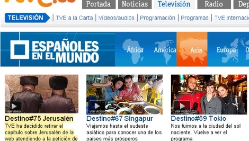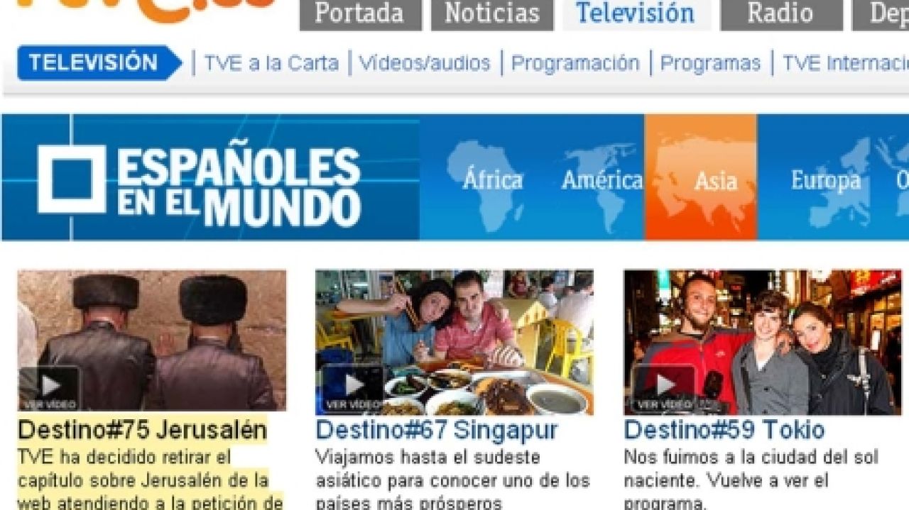 RTVE ha vuelto a colgar en su página web el capítulo de 'Españoles por el Mundo' sobre Jerusalén después de haberlo retirado hace un par de semanas a petición de la Defensora del Espectador de RTVE, Elena Sánchez, que había recibido 170 comunicaciones denunciando que el reportaje, emitido en diciembre de 2010, ofrecía "una visión incompleta" de la ciudad.