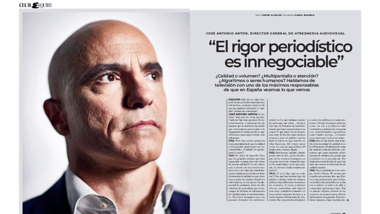 Entre los nombres elegidos por la revista Esquire para esta edición se encuentra también el del director general de Atresmedia, José Antonio Antón, responsable de todo el negocio audiovisual del Grupo. En una extensa entrevista realizada por el director de Esquire, Jorge Alcalde, Antón repasa las líneas maestras de la estrategia de Atresmedia que ha llevado a cerrar 2025 como líder absoluto de la televisión por cuarto año consecutivo.
