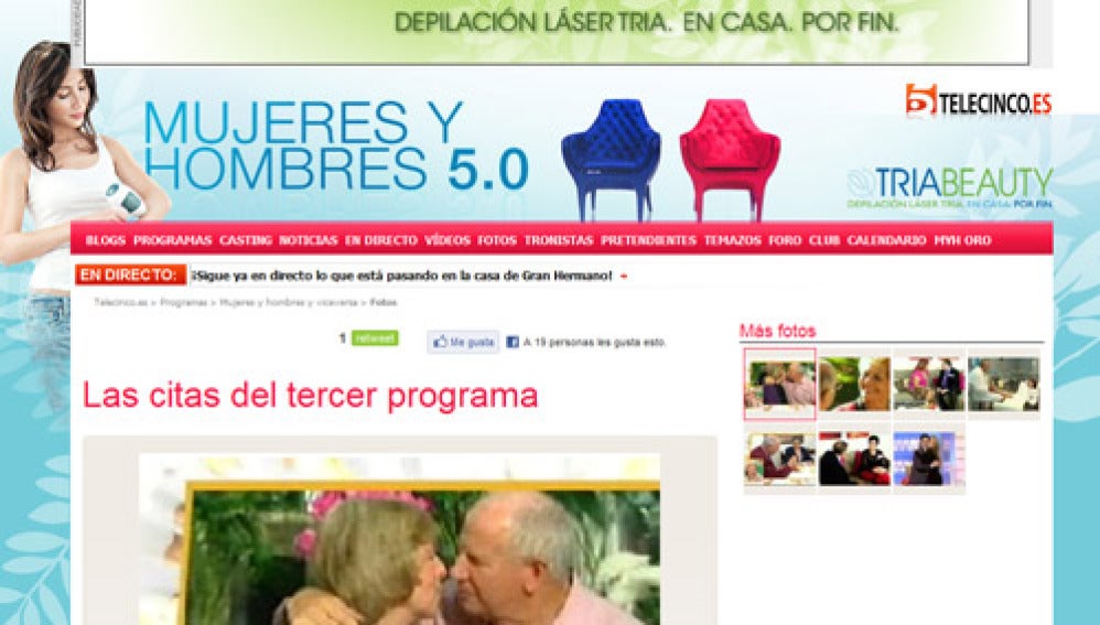 Tres programas han sido más que suficientes para tomar la decisión. Telecinco acaba de cargarse la versión senior del programa "Mujeres y hombres y viceversa". Los pésimos resultados de este último domingo (6,6%) ha facilitado la toma de decisión, según ha podido saber Objetivotv.com. Estrenado el pasado 10 de octubre, Telecinco pretendía trasladar los resultados del programa diario a esta versión dominical, sin embargo, en esta ocasión el formato no ha sido recibido con los brazos abiertos.