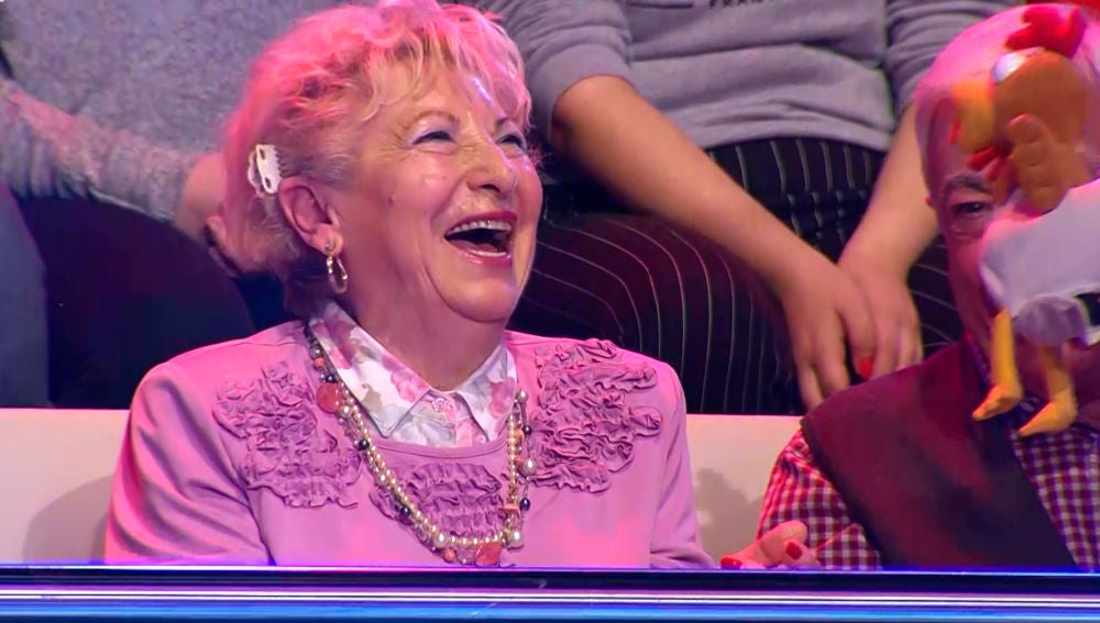 Una señora del público le dedica un chiste a Perri, la mascota de '¡Ahora Caigo!'