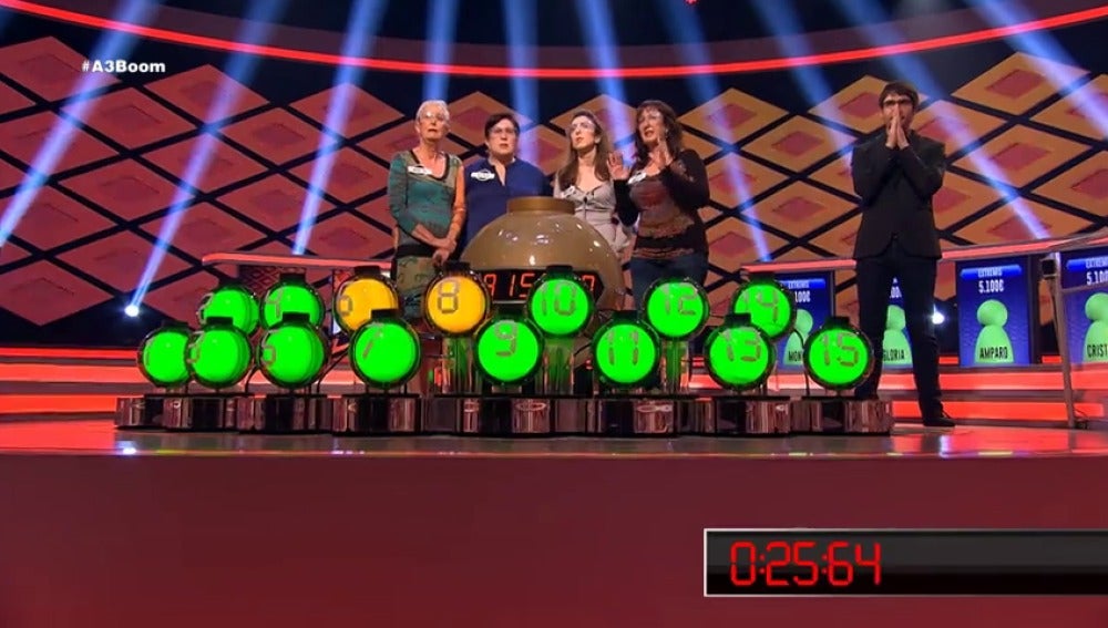 MOMENTOS '¡BOOM!' 6 DE OCTUBRE Dos bombas separan a las 'Extremis' del gran bote Las 'Extremis' se han vuelto a plantar en la gran final y se han quedado a tan solo dos bombas de un bote de 915.000 €. ¡Casi! Más sobre este tema: Extremis Juanra Bonet Boom