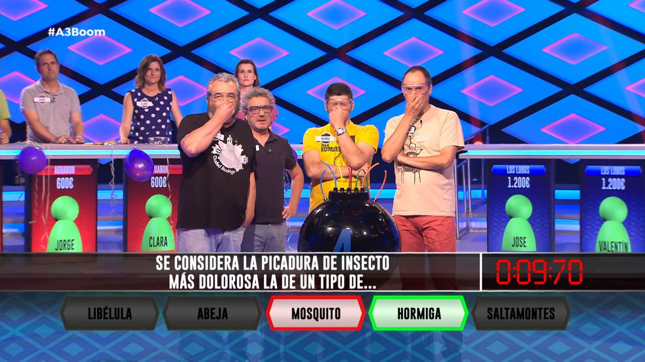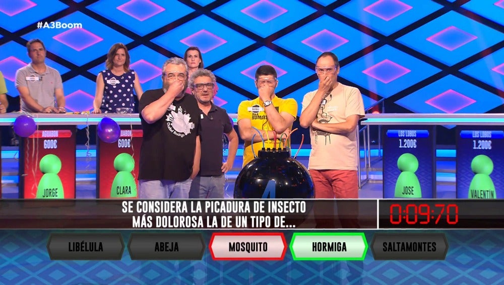 El equipo campeón ‘Los Lobos’ sigue en racha y acumula 191.600€ tras 37 programas, sobre todo gracias a su intuición en las cuartas preguntas, que son las que marcan el devenir de cada programa. Y es lo que sucedido en nuestra última edición, donde han sido capaces de resolver una peliaguda pregunta sobre animales: ¿qué tipo de insecto tiene la picadura más dolorosa de todas? ¡Juega con nosotros dándole al play y descubre la respuesta!