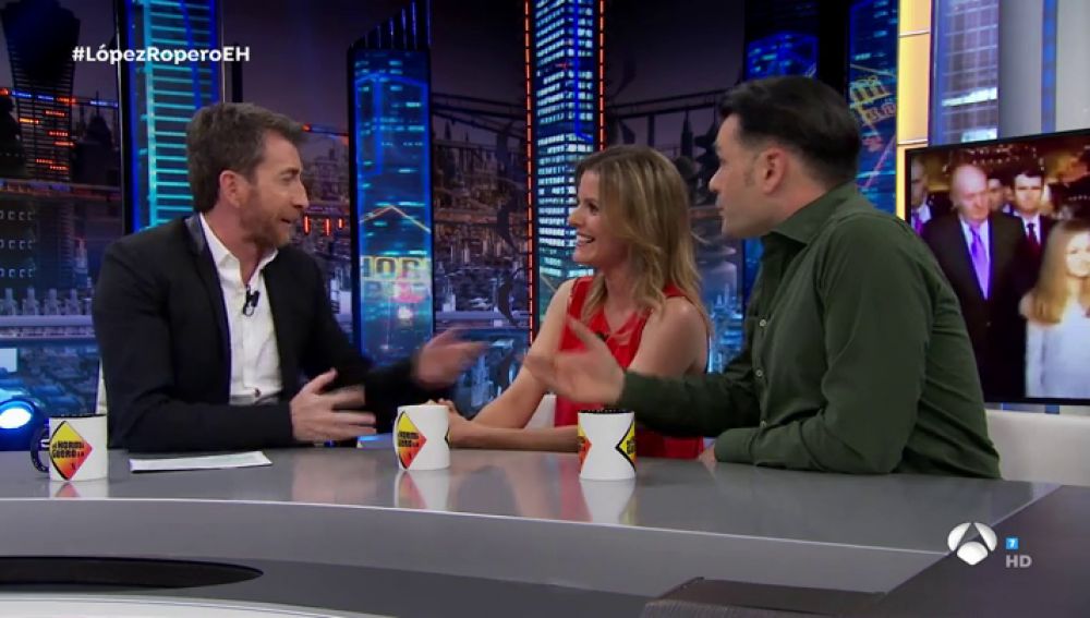 Iñaki Lópezy Andrea Ropero se han sincerado con Pablo Motos. Después de hablar sobrelos temas que tratarán en su próximo programa, entre los que destacan la polémica sentencia de 'La Manada' y las pensiones, los presentadores han confesado en 'El Hormiguero 3.0' que les encantaría entrevistar a los Reyes, y en concreto, Andrea Ropero ha asegurado que sería un placer entrevistar a la Reina.