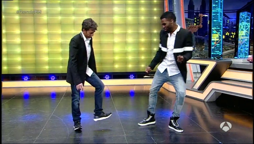Pablo Motos le pregunta a Jason Derulo si cualquiera es capaz de bailar bien, a lo que el artista le responde que "sí, siempre que tenga un buen profesor". Al presentador esta afirmación le ha sonado como un reto y le ha propuesto a Derulo que le enseñe a bailar. ¿Conseguirá Pablo Motos mover las caderas como el cantante estadounidense?