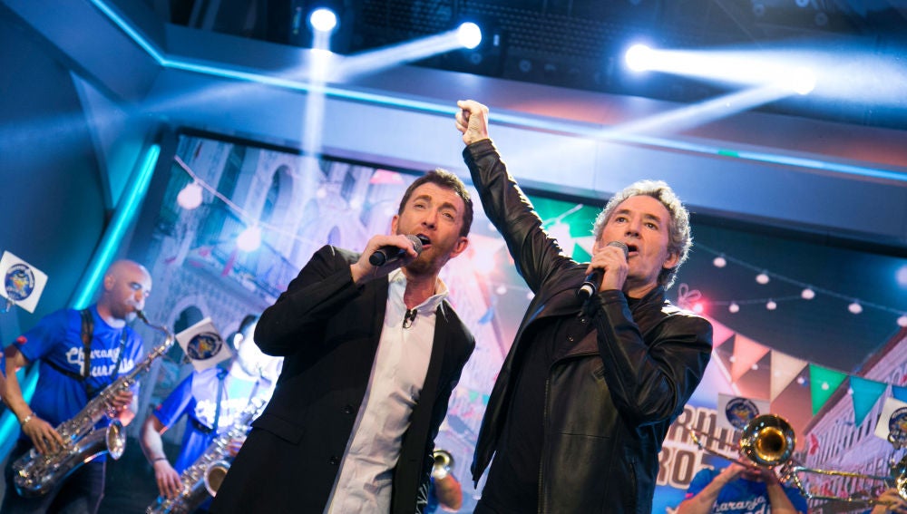Miguel Ríos canta 'Bienvenidos' con una charanga y con Pablo Motos en directo: "Nunca me hubiera esperado esto, ¡qué ritmo!"