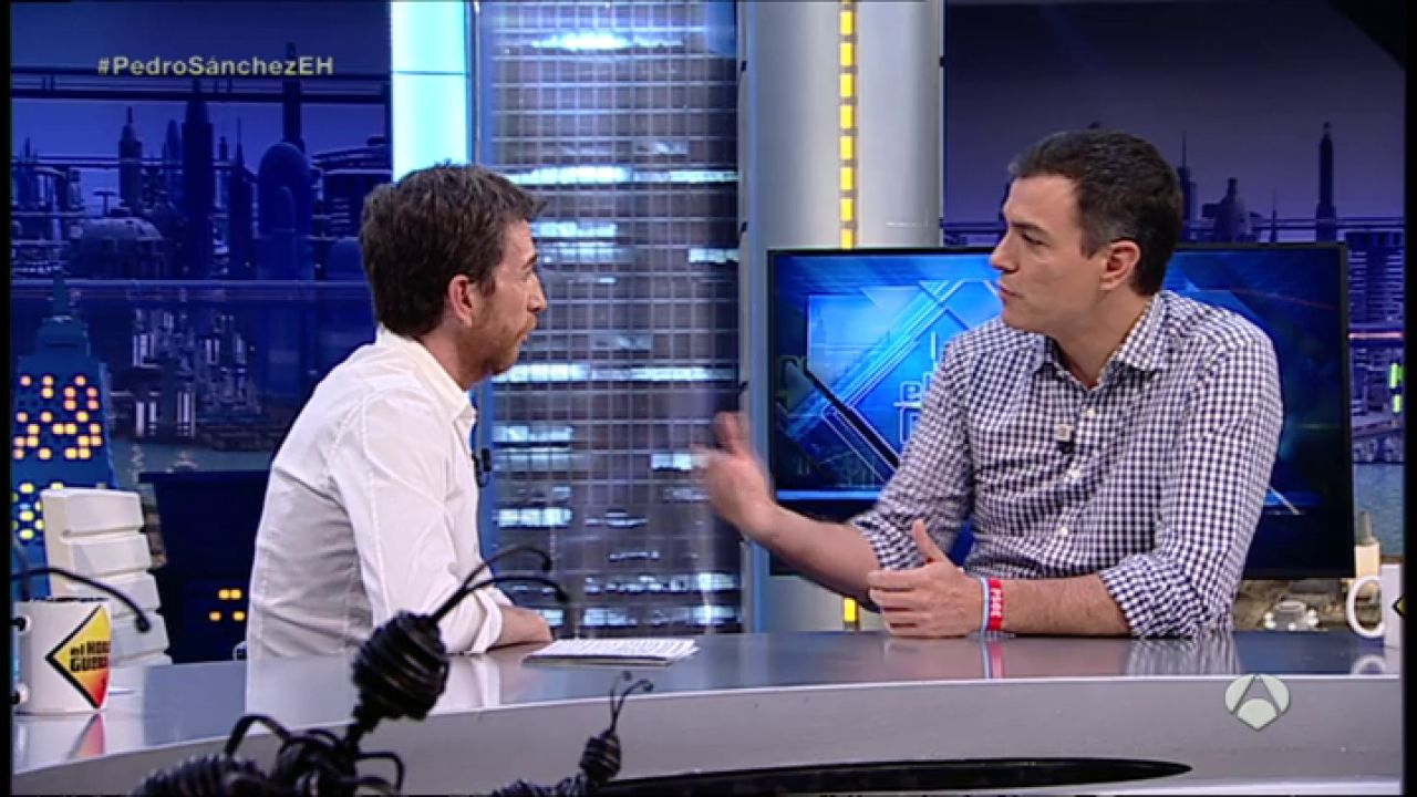 Pedro Sánchez, secretario general del PSOE, ha hablado con Pablo Motos sobre la legalización o no de la prostitución y de las drogas, como la marihuana, sobre lo cuál ha dicho que no tiene aún una idea clara de lo que haría si ganara las elecciones generales del próximo 26 de junio.