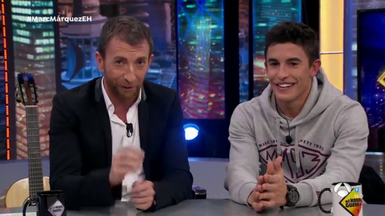 Pablo Motos afirma que el mundo de las motos es "súper competitivo" y asegura que Marc Márquez es diferente a todo el mundo. Motos le enseña unas imágenes al piloto para demostrárselo en 'El Hormiguero 3.0': "Nosotros no seríamos capaces de hacer esto".