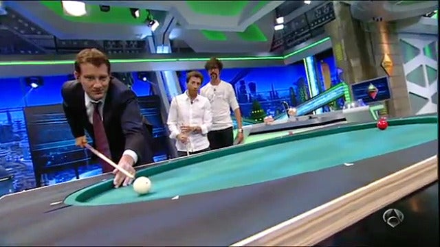 Marron le propone a Clive Owen un juego muy entretenido en su sección de ciencia, el billar infalible, construido sobre una elipse, en la que tires la bola en la dirección que lo hagas siempre golpeará a la otra bola. ¿Te gusta el billar de El Hormiguero?