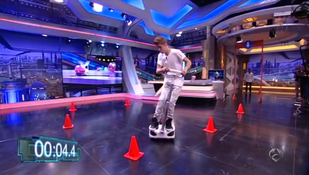 El joven cantante ha querido competir con el presentador de El Hormiguero en una carrera de Roby donde Justin Bieber le ha sacado varios segundo a Pablo Motos y además ha conseguido llevarse el monopatín a casa.