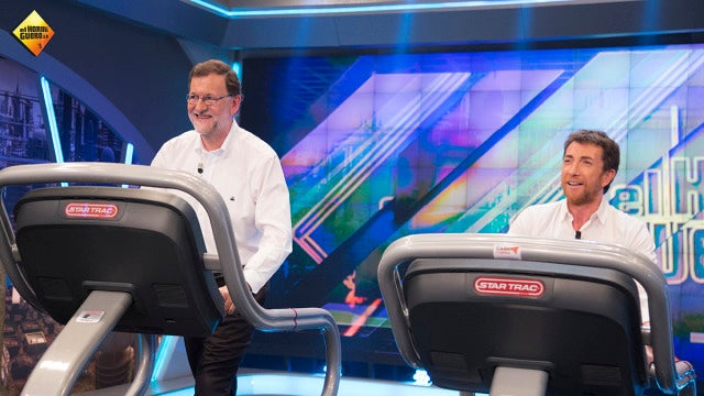 Pablo Motos le ha propuesto a Mariano Rajoy finalizar su visita a 'El Hormiguero 3.0' sobre una cinta de correr, en honor a los paseos que le gusta dar al actual presidente del Gobierno en funciones. Además, mientras caminaban, el presentador del programa le ha hecho algunas preguntas sobre la geografía española al líder del Partido Popular.