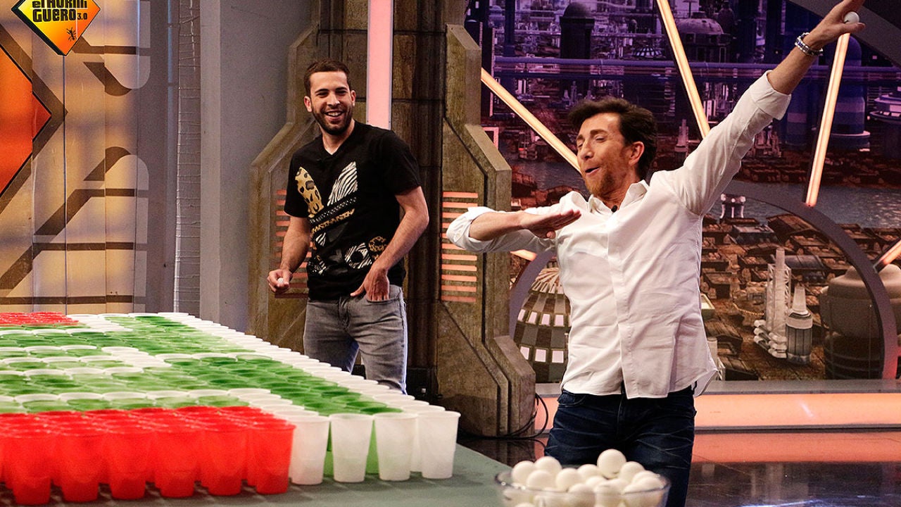 Pablo Motos le ha propuesto un nuevo 'deporte' al futbolista Jordi Alba, se trata del 'Ping-Pong Fútbol'. Con una mesa llena de vasos que simulan un pequeño campo de fútbol cada uno de los contrincantes, en este caso Pablo y Jordi, deben meter una pelota de ping-pong en el área de la portería del contrario para ganar. Como la cosa se ha ido poniendo emocionante Jordi Alba ha querido apostarse una cena con Pablo Motos, cena que finalmente Jordi tendrá que pagar ya que ha sido el perdedor.
