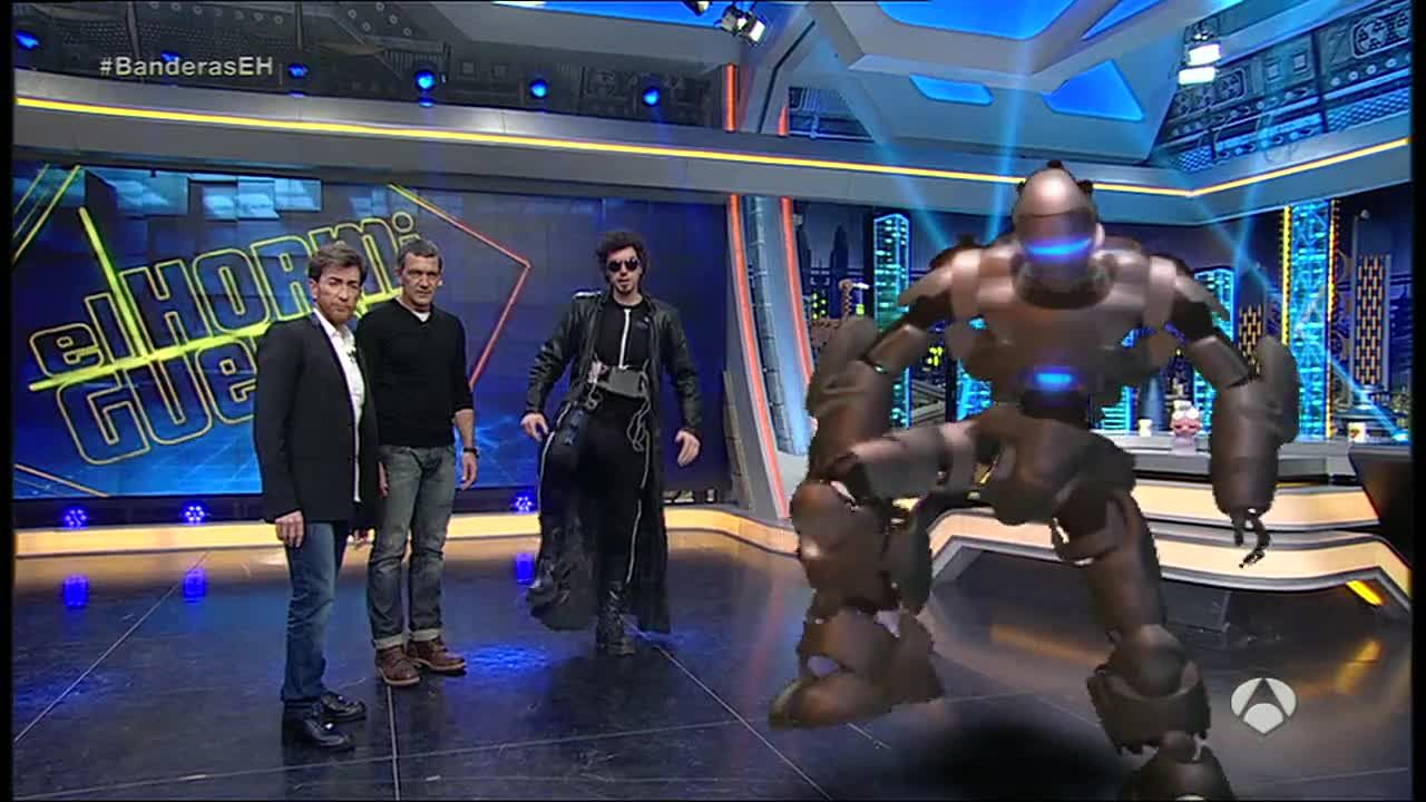 El Hombre de Negro nos ha sorprendido con una entrada de lo más peculiar, ya que en su lugar ha entrado un robot virtual. Nos ha mostrado la tecnologia de captura de movimiento. A continuación y ya que le han dado el Goya de Honor a nuestro invitado Antonio Banderas hemos intentado escoger con él el vestuario para esa noche con 'Virual Dressing Room Atlantis'