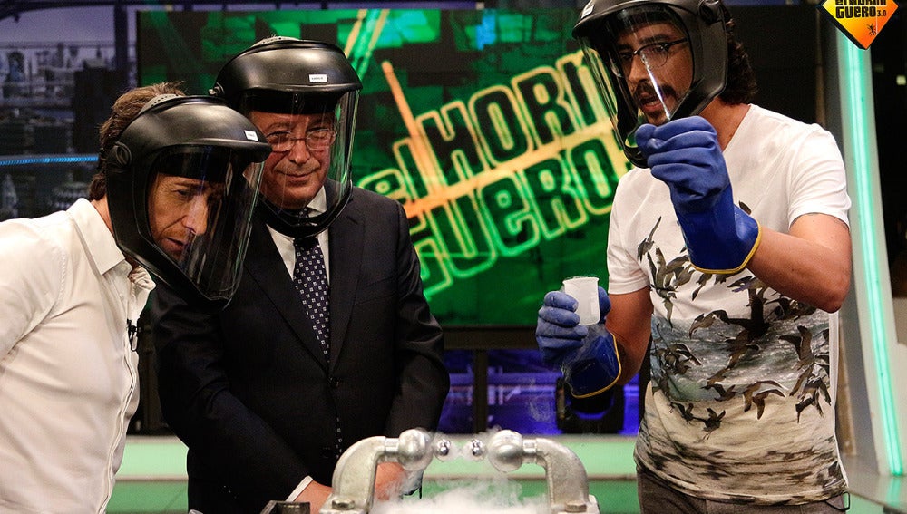 Marron nos enseña un gas que pocas veces la vemos en otro estado que no sea el gaseoso. Hablamos del oxígeno en estado líquido, en este estado el oxígeno adquiere un color azul y además es fuertemente paramagnético como nos demuestra Marron en el experimento.