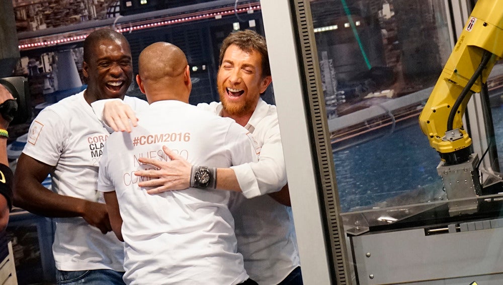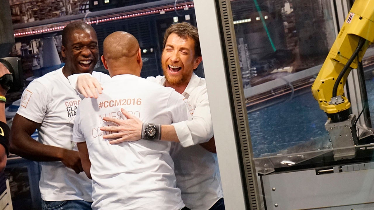 Marron ha venido acompañado del robot futbolín, un brazo robótico tan chulito que con un único jugador se basta. ¿Habrán podido ganarle Roberto Carlos y Seedorf? Además, Marron nos ha enseñado a lanzar bolas de fuego con las manos.