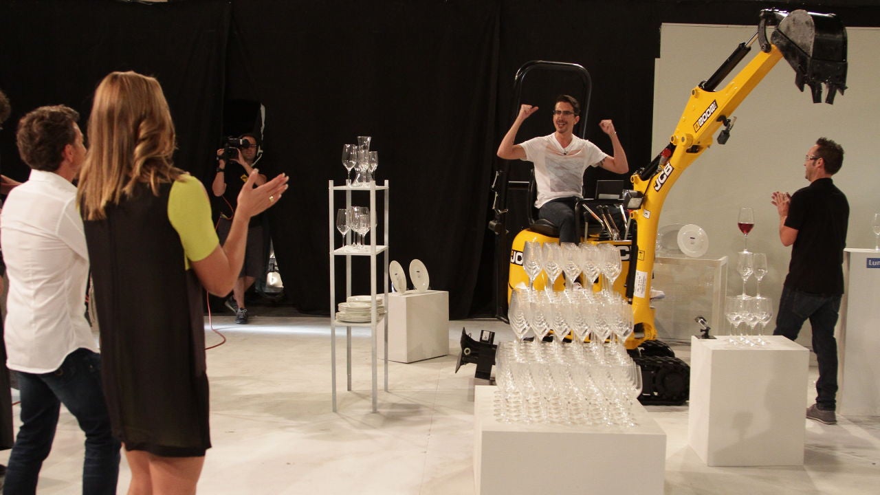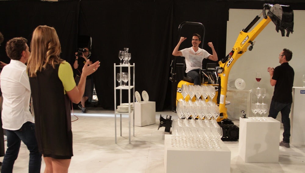 Aprovechando que Marron trabajó como mozo de almacén con un toro hidraúlico, le hemos retado a entrar con una excavadora a una tienda con todo tipo de vajillas. El reto será que realizar un recorrido por toda la tienda sin tirar nada y salir por el otro lado, ¿lo conseguirá? Y para meter más presión al científico más divertido de El Hormiguero, tendrá que coger una copa de una pila de copas con la pala de la excavadora y posarla sobre otra pila... ¡Y todo en 2 minutos!