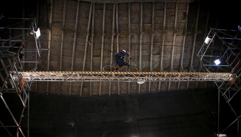 Rubén supera un nuevo reto sobre una bicicleta a 6 metros de altura