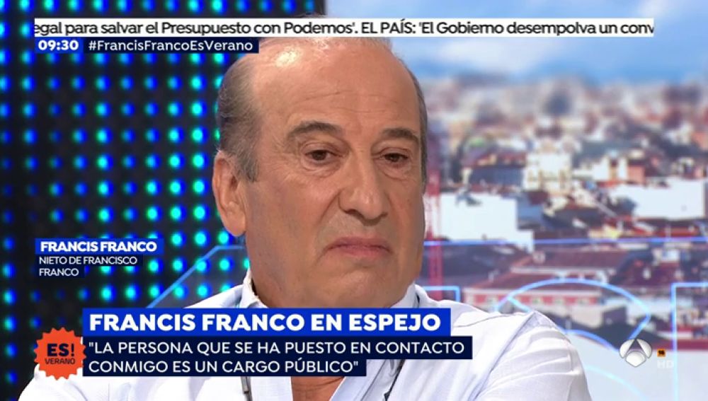 El Consejo de Ministros aprueba hoy sacar a Franco del Valle de los Caídos. La familia ha preferido no hablar públicamente del tema. Por ello, Francis Franco, nieto del dictador, ha explicado lo que opina al respecto. Considera que no es uno de los principales problemas que tiene España ahora mismo, y asegura que "es una decisión oportunista, cobarde y revanchista". Además ha confirmado que el Gobierno sí se ha puesto en contacto con la familia.
