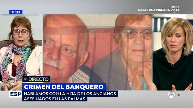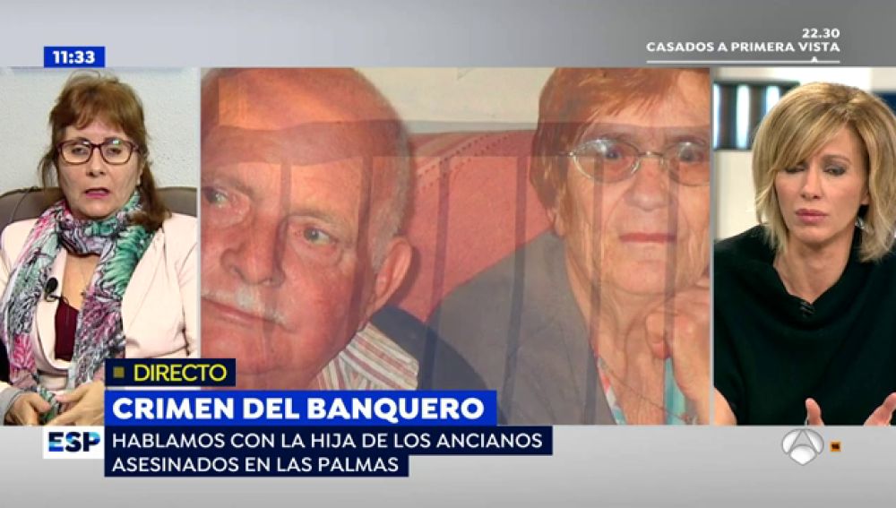 'Espejo Público' ha charlado con Loli Quesada, la hija de los ancianos asesinados en Las Palmas, tras quedar en libertad con cargos el subdirector de la entidad donde sus padres tenían todo su dinero. Los investigadores sospechan que saqueó la cuenta de las víctimas, apropiándose de 60.000 euros, y puede estar implicado en la muerte. Loli, quien siempre ha pensado que el móvil tenía que ser económico, ha expresado que "la Policía esta segurísima de que ha sido él y yo también lo sé".