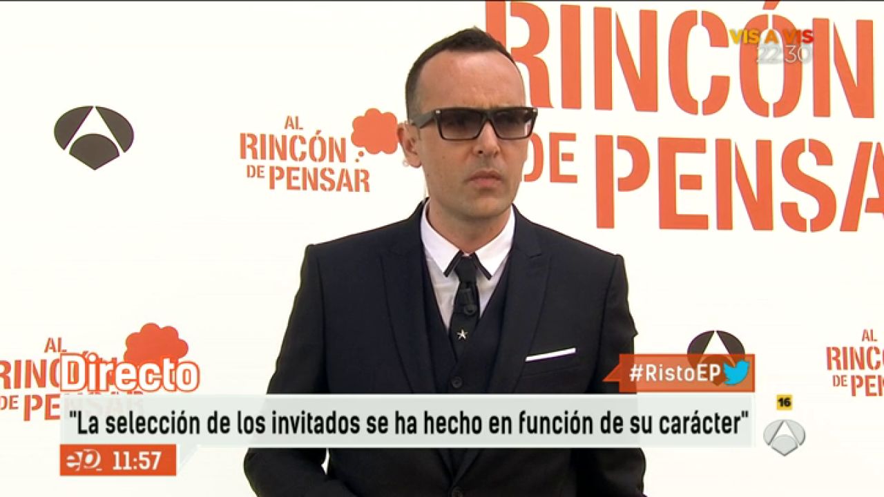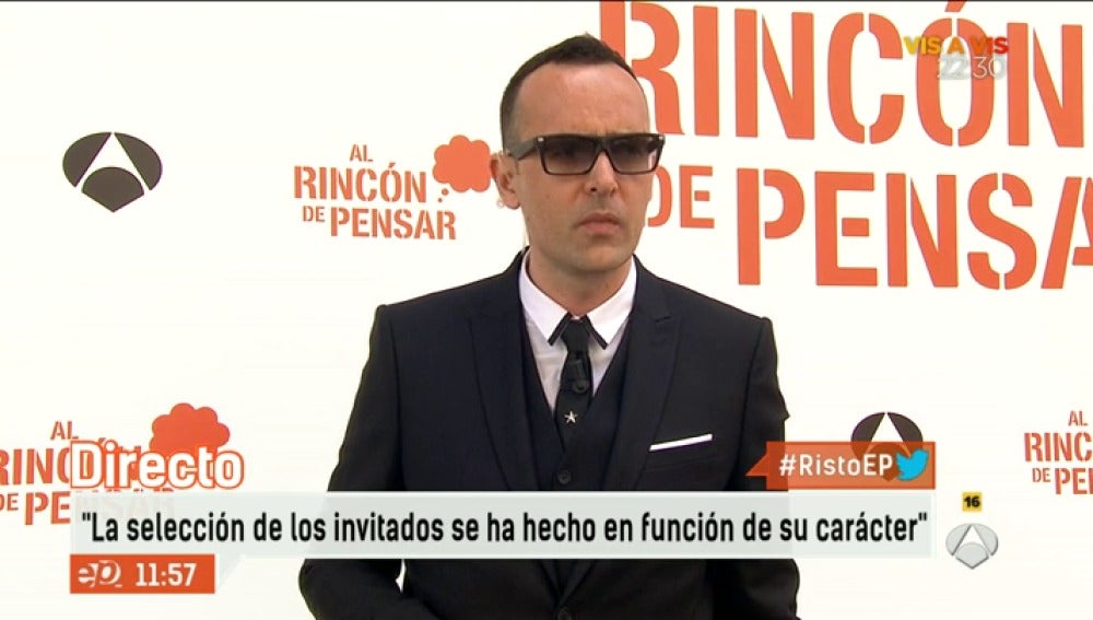 En Espejo Público hemos hablado con Risto Mejide poco antes del estreno de Al Rincón de pensar, su nuevo programa en Antena 3. "La selección de los invitados se ha hecho en función de su carácter", ha declarado en primicia en los micrófonos de Espejo Público.